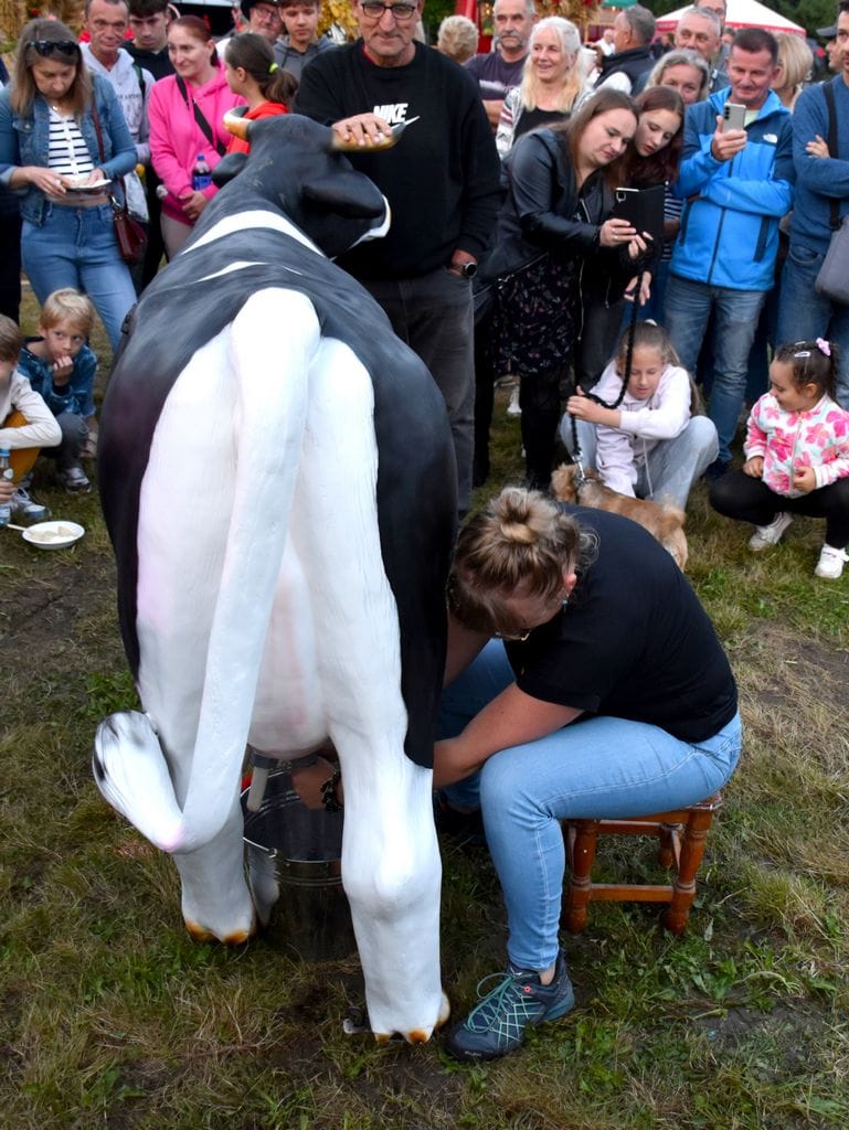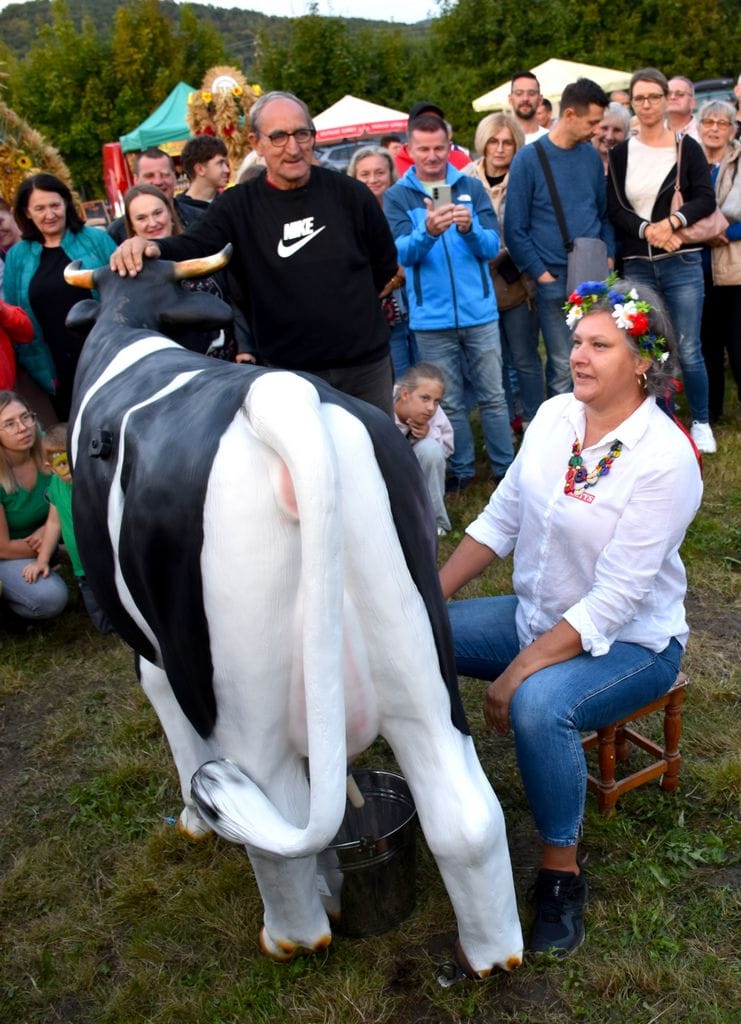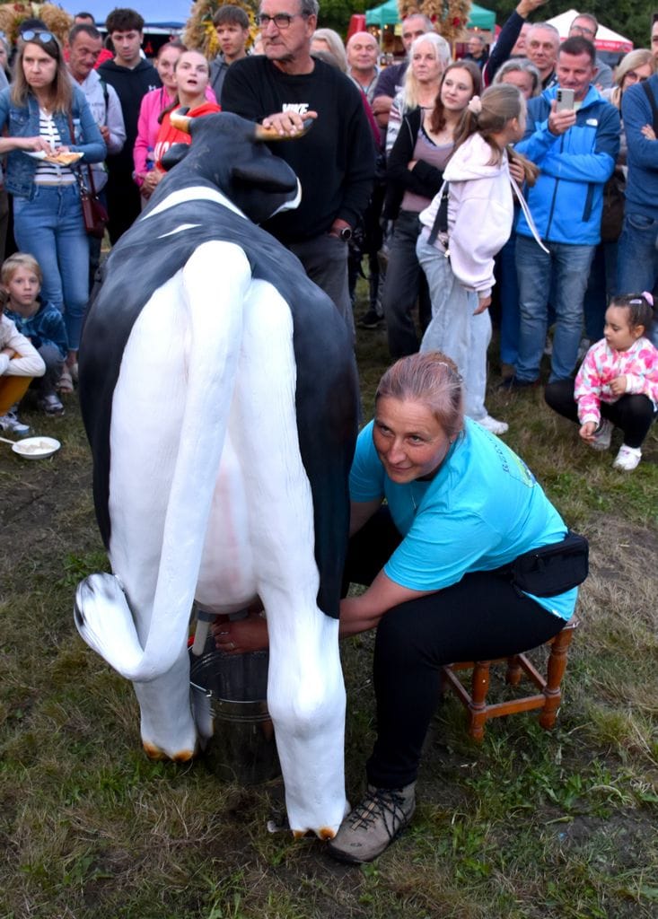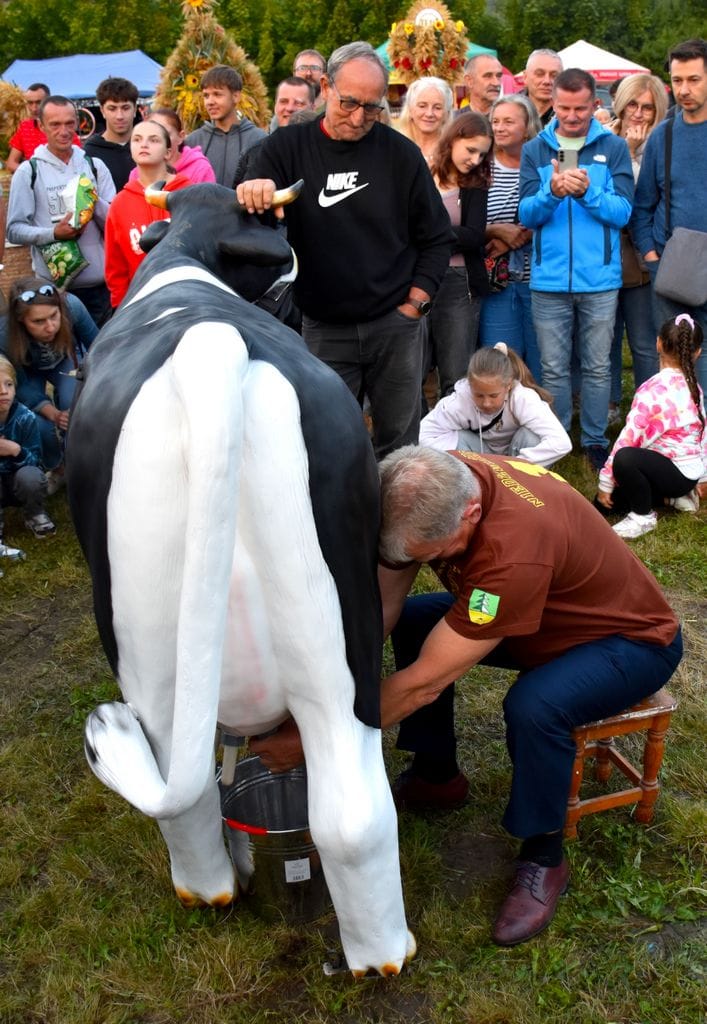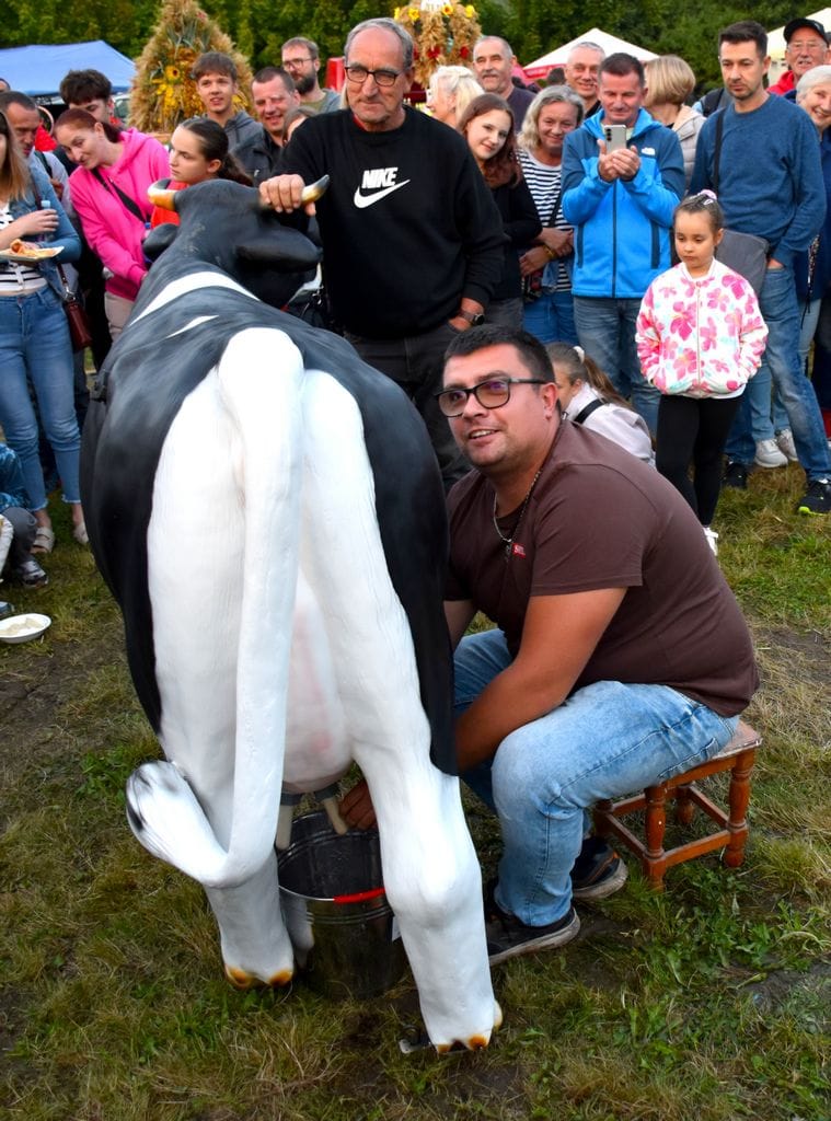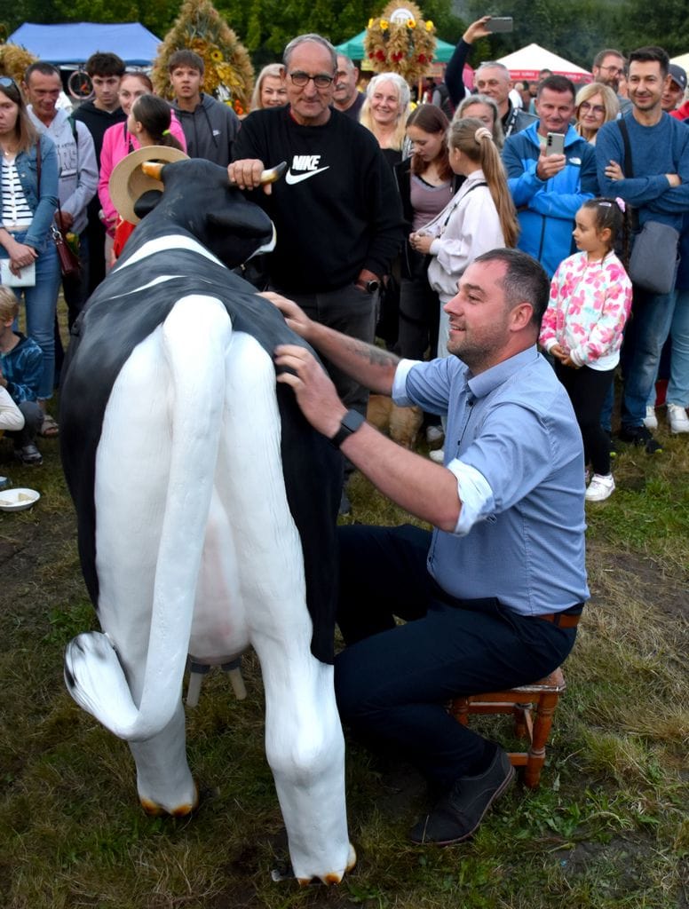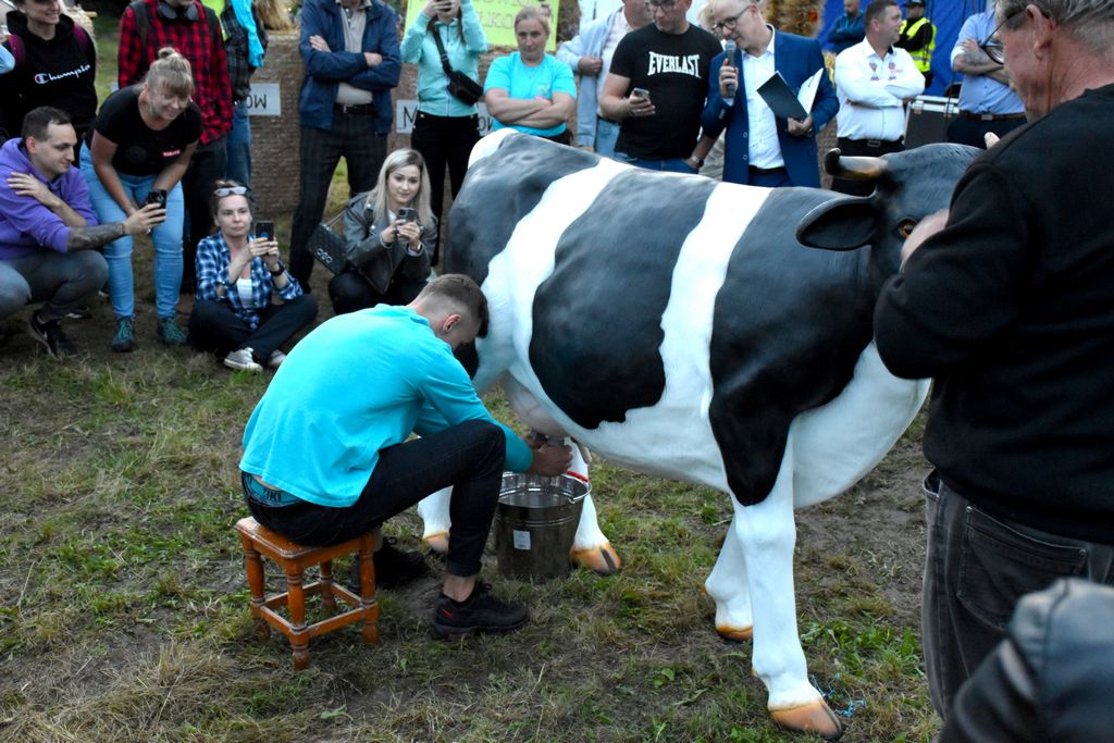Na wyjątkowy tytuł Mistrza Dojenia zapracował sołtys Olszyńca wyciskając z krowy potężną ilość „mleka”.