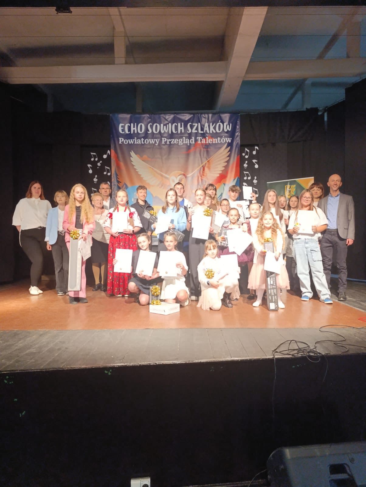 Po naradach jury w składzie: p. Jolanta Pajkert – Marek (emerytowany choreograf Zespołu Pieśni i Tańca Wałbrzych), p. Katarzyna Radoń (przedstawiciel Filharmonii Sudeckiej) oraz p. Jan Jaśkiewicz (absolwent naszej szkoły i laureat wielu konkursów i przeglądów), przyznało wyróżnienia oraz nagrody główne.