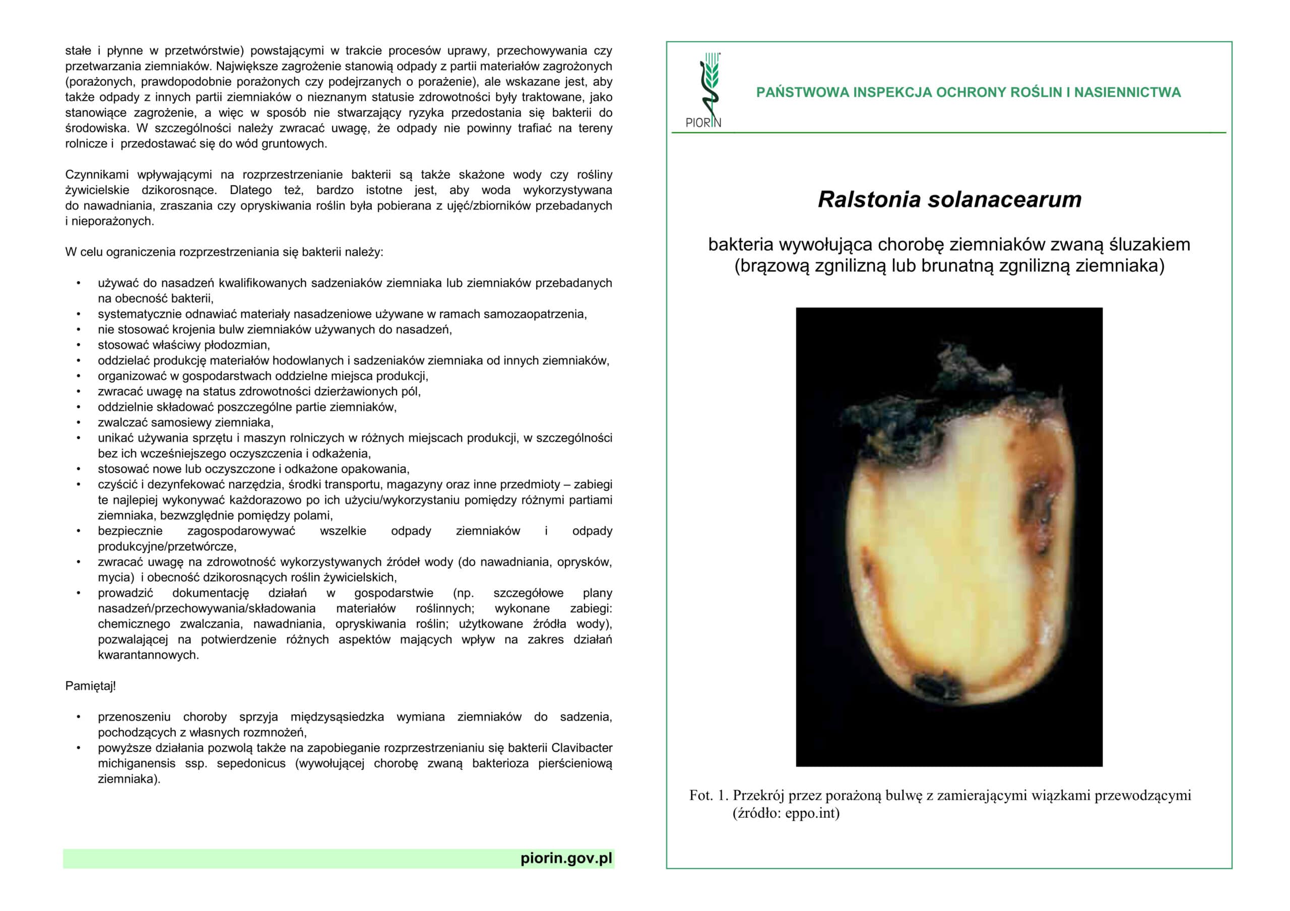Choć na terenie powiatu wałbrzyskiego patogen nie został wykryty, może on zagrażać uprawom ziemniaka, pomidora i innych roślin żywicielskich, jeśli użyjemy skażonej wody do nawadniania lub oprysków.