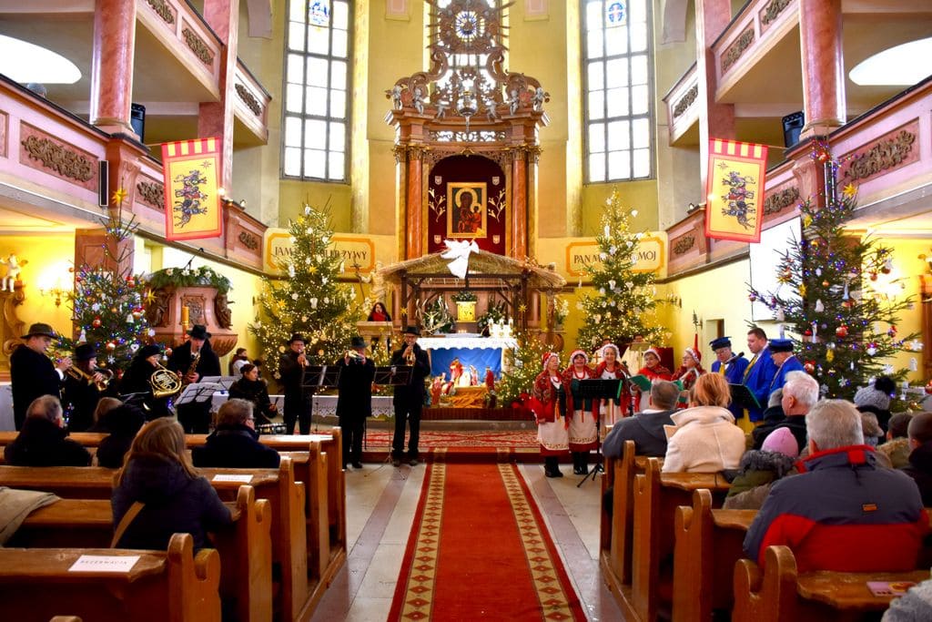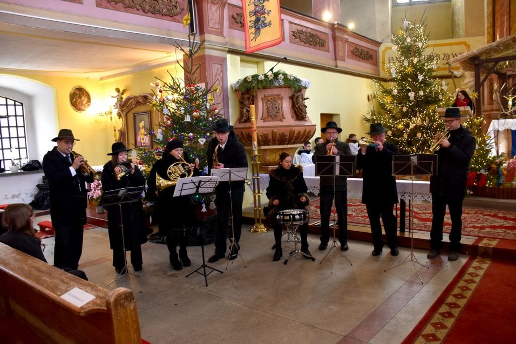 „Głos Lasu” rozbrzmiał w Walimiu wypełniając wnętrze kościoła św. Jadwigi melodiami znanych kolęd i pieśni świątecznych prezentując je w łowiecko-leśnej aranżacji.