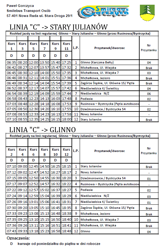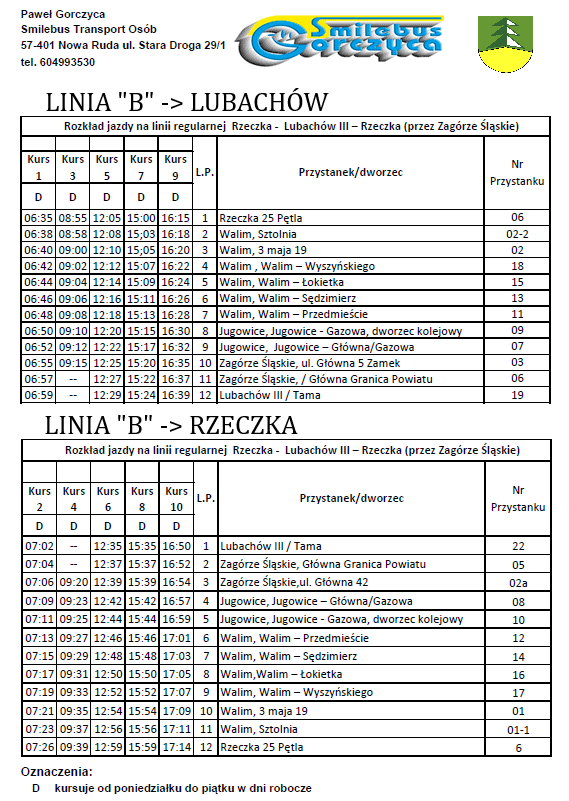 Biorąc pod uwagę potrzeby i sugestie mieszkańców, zgłaszane przez pierwsze tygodnie realizacji usługi transportu zbiorowego osób, zweryfikowaliśmy pierwotne rozkłady, dokonując stosownych korekt, aby jak najlepiej odpowiadały one na Państwa potrzeby.